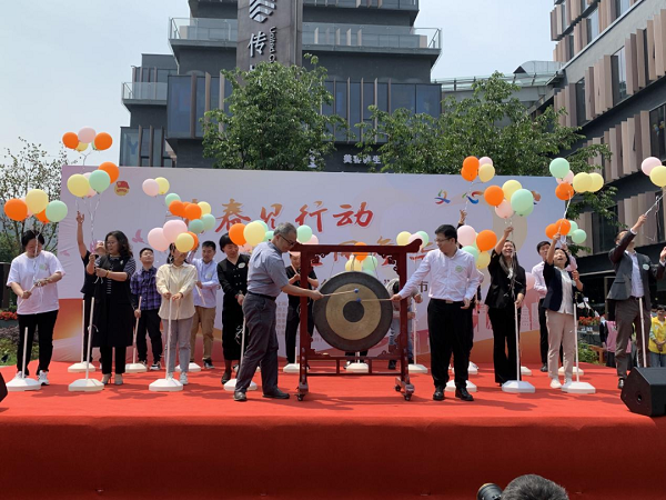 王建恩和郑雷刚共同鸣锣,开启活动,全体嘉宾放飞气球。