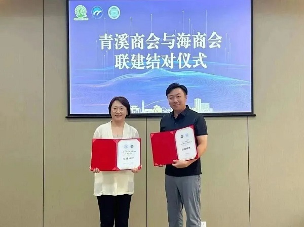 上海海商会会长冯杰介绍海商会概况,海商会是华东地区最有影响力跨境电商协会之一。他表示,将加强与青溪商会会员企业之间的友好交流合作,互补互利、联建结对、共同发展。