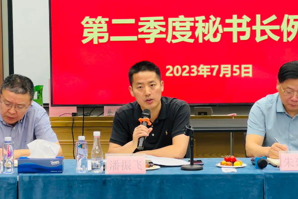 7月5日下午,宝山区工商联2023年二季度秘书长例会在环上大科技园零号基地三楼会议室召开。区委统战部副部长、区工商联党组书记潘振飞出席会议并讲话。区工商联24家所属商会和团体会员秘书长及工商联部室相关机关干部参加会议,会议由区工商联副主席朱建超主持。