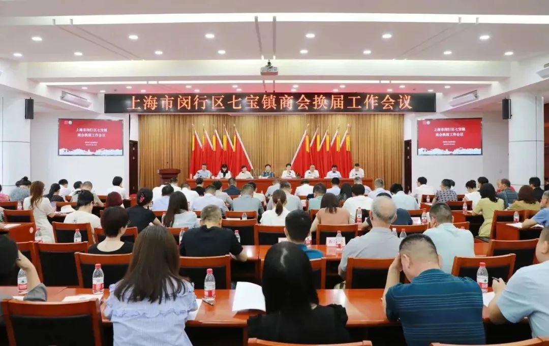 7月19日下午,闵行区七宝镇商会换届工作会议顺利召开,区委统战部副部长、区工商联党组书记马佩华,镇党委书记杨维萍,镇党委副书记李菁,镇党委委员、副镇长胡小胜,镇党委委员潘晓岚等出席会议,镇商会会员180位代表参加会议。
