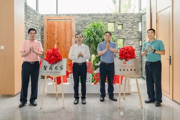 为深入学习宣传贯彻党的二十大精神,坚持“两个毫不动摇”,促进“两个健康”,落实区委关于加强新时代商会协会党建工作部署和要求,进一步提升镇商会服务民营经济能级与水平,7月13日下午,奉贤区庄行镇商会在浦秀村糖梨花泽举行“花米贤商之家”、“党员之家——贤商先锋站”揭牌仪式。