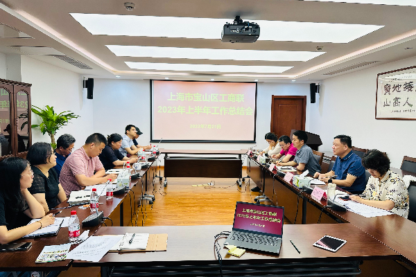 7月21日下午,宝山区工商联2023年上半年工作总结会召开。区工商联全体机关工作人员参加会议,会议由区委统战部副部长、区工商联党组书记潘振飞主持。