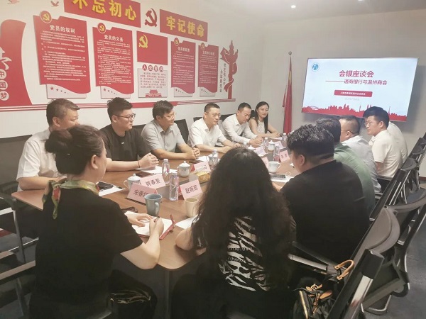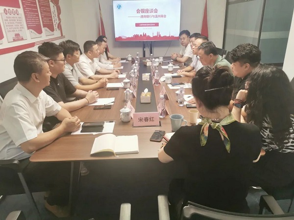 7月20日下午,奉贤区温州商会与宁波通商银行开展交流座谈会。宁波通商银行上海分行行长金朝晖、奉贤支行行长陈涛、奉贤支行书记张建军以及分行产品经理姚呈呈、支行经理宋晓峰、客户经理姚春荣等一行到会。奉贤区温州商会会长陈智,常务副会长胡成平、陈建新、林元对,副会长巢志强、赵婉茹以及秘书长宋春红等10余人参加座谈。