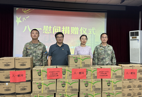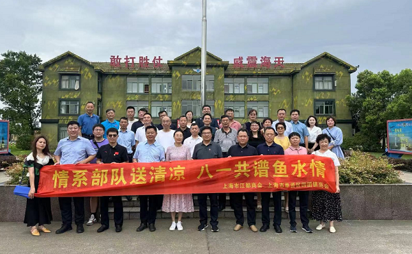 7月28日下午,奉贤区四团镇商会、上海市江都商会开展“情系部队送清凉,八一共谱鱼水情”活动,30家企业组成慰问团一行走访慰问海湾部队,为那里的人民子弟兵们送去了节日的问候,向他们保家卫国的神圣使命致以崇高的敬意。