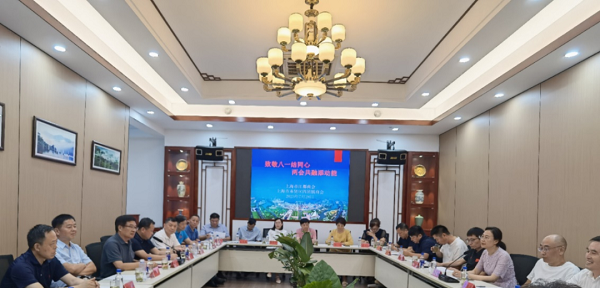 在会场,四团镇商会和上海市江都商会召开交流座谈会,双方就党建、会建工作进行深入沟通,就《中共中央 国务院关于促进民营经济发展壮大的意见》等方面进行深入探讨与交流。双方人员自由交流与互动,相互介绍公司业务内容,共同探讨可合作的业务方向和业务关联点。