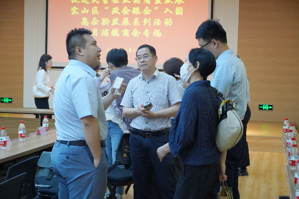 为深入贯彻落实《中共中央 国务院关于促进民营经济发展壮大的意见》,7月28日下午,由宝山区工商联主办、月浦镇商会承办的宝山区“政会银企”入园惠企助发展系列活动——月浦镇商会专场活动在月浦镇社区党群服务中心三号楼二楼会议室举办,这是今年以来区工商联为促进民营经济高质量发展,举办的“政会银企”专项行动的第八次活动。月浦镇商会秘书长盛涛主持会议并介绍了活动的相关情况。