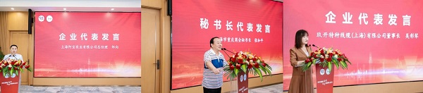 玖开特种线缆(上海)有限公司董事长吴彩琴、上海阿宝实业有限公司总经理邹向、上海市重庆商会秘书长张和平分别上台作交流发言。