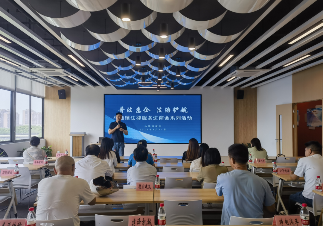 为营造良好法治营商环境,促进民营经济健康发展,8月11日下午,嘉定区马陆镇商会举办“普法惠企 法治护航”专题宣讲活动,30多家镇商会会员企业代表参加。