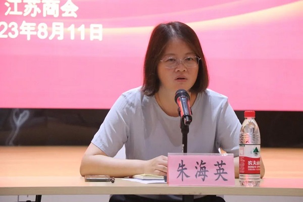 会上,朱海英简要介绍了“百企助百苗”公益行动的背景及意义。此次活动是由奉贤区工商联牵头,组织区内100家民营企业与100名优秀困境青少年开展结对帮扶。奉贤区江苏商会大力号召会员参与2023年贤城“百企助百苗”公益行动,商会企业家迅速响应,与8名青少年成功结对。商会将连续三年,为每位青少年资助3000元,帮助解决青少年成长过程中遇到的实际困难,加强与青少年的关爱交流。