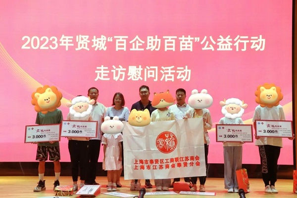 8月11日下午,奉贤区离退休干部局、区关工委、奉浦街道党工委办事处、奉贤区江苏商会在奉浦街道社区文化活动中心顺利开展2023年贤城“百企助百苗”公益行动走访慰问活动。区委老干部局副局长、区离退休干部工作党委委员、区关工委副主任朱海英,奉浦街道党工委委员、办事处副主任张匀,奉贤区江苏商会常务副会长程晓明及商会秘书处等出席活动。
