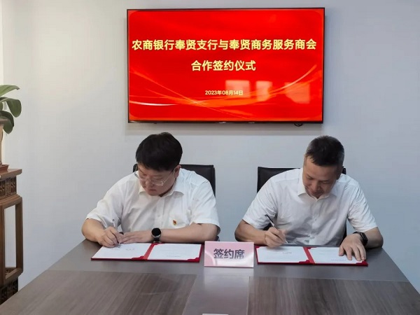 为进一步加强银行与商会间金融服务联系和加大金融赋能小微企业经济力度,更好迎合会员企业的金融服务需求,8月14日下午,农商银行奉贤支行行长赵峰等一行来到奉贤区商务服务商会开展座谈交流活动,并举行战略合作签约仪式。商会会长郑元生,党支部书记、副会长陆建卫,副会长刘保银,理事谈福华及秘书处工作人员参加此次签约仪式。商会副会长企业上海凯耐展览集团有限公司派代表廖永锋参加了活动。