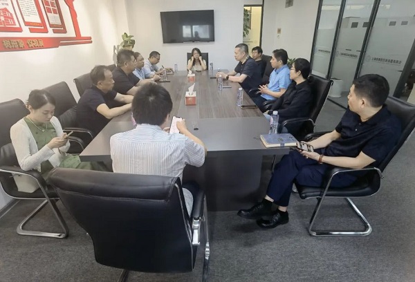 首先,长三角专精特新基地负责同志一行参观了商会会长企业上海悠口企业发展集团有限公司。随后,在奉贤区商务服务商会秘书处进行了座谈交流。