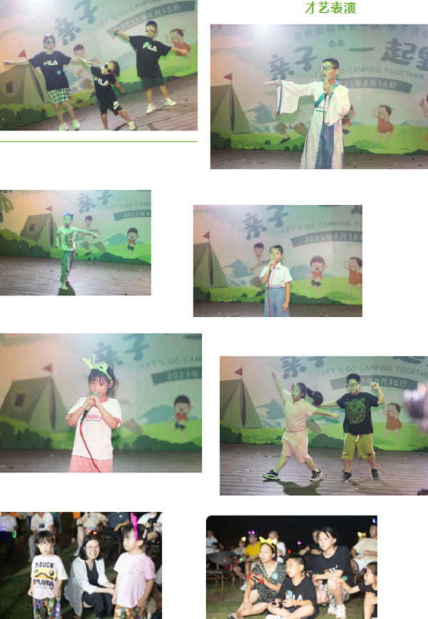 夜幕降临,温馨的亲子才艺表演和篝火晚会开启了序幕,小朋友们在台上跳舞唱歌、诗文朗诵等各自展现优秀的才艺,大朋友们也齐聚唱歌跳舞。随后,大家手牵手、肩并肩,围起大圆圈跳舞,一同融入篝火盛宴。