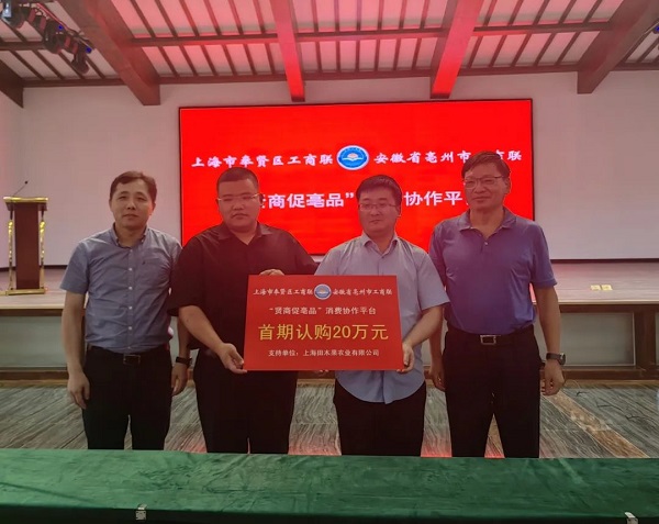 奉贤区工业综合开发区商会与谯城区工商联、南桥镇商会与蒙城县工商联、庄行镇商会与涡阳县工商联、奉城镇商会与利辛县工商联分别签订结对协议。上海东安保安服务有限公司与亳州市退役军人服务中心签订合作协议。