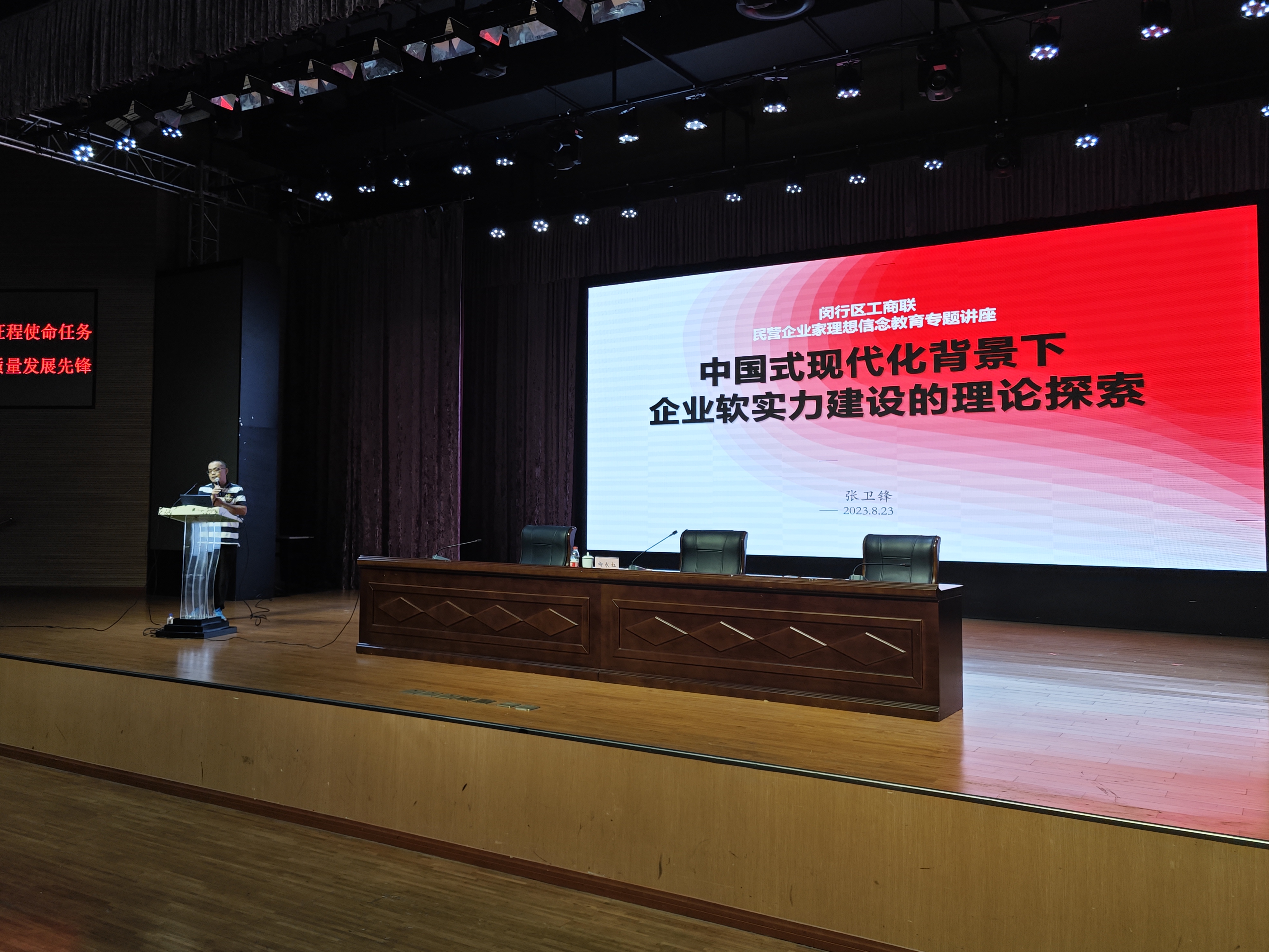 会后,上海见己文化传播中心CEO张卫锋作《中国式现代化背景下企业软实力建设的理论探索》的专题讲座。