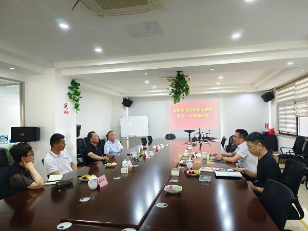 顾向红向台州市工商联一行介绍了商会发展历程、会员组成、行业结构、特色党建和商会成立以来开展的亮点工作及获得的荣誉等情况。