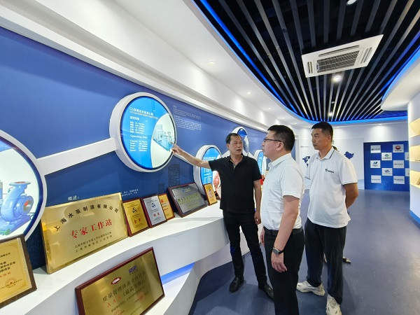 陈永波带领调研组一行参观了水泵公司展示厅。上海水泵制造有限公司,是由上海电气集团下属上海水泵厂改制而组建的股份制公司,始创于1930年,专业生产各类泵系统输送产品。公司为以下行业提供专业服务:能源、石油、化学工业、冶金、水利建设等;提供高品质产品的同时,公司还承包给排水系统、化工流程输送、智慧泵站等整体解决方案。