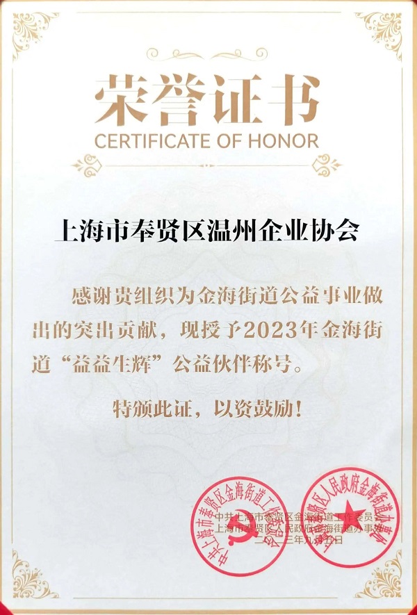 此次获奖,既是社会各界对奉贤区温州商会慈善公益工作的认可,也是商会上下共同努力的结果。今后,商会将一如既往地支持各项公益慈善事业发展,同时充分发挥桥梁纽带作用,做好上联政府、下联企业的各项工作,不断发展壮大队伍,服务会员企业共谋发展,共同回报社会。