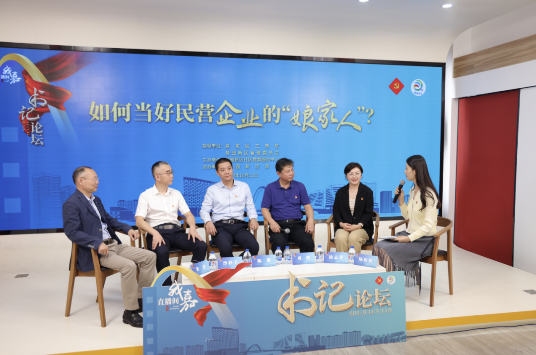 民营经济是推进中国式现代化的生力军,优化民营企业发展环境,是鼓励和支持民营经济和民营企业发展壮大、提振市场预期和信心的必然要求。作为党和政府联系民营经济的桥梁和纽带,商会承担着民营企业“娘家人”的角色,如何为“自己人”服务好进而推动民营经济高质量发展是最近热议的话题。10月12日下午,“‘我嘉直播间’书记论坛”第五期围绕商会如何坚持党建引领,当好民营企业的“娘家人”,为民营经济的发展助力的主题,在菊园新区社区党群服务中心演播厅展开了热烈的讨论,共同为优化民营企业发展环境寻找破题之道。