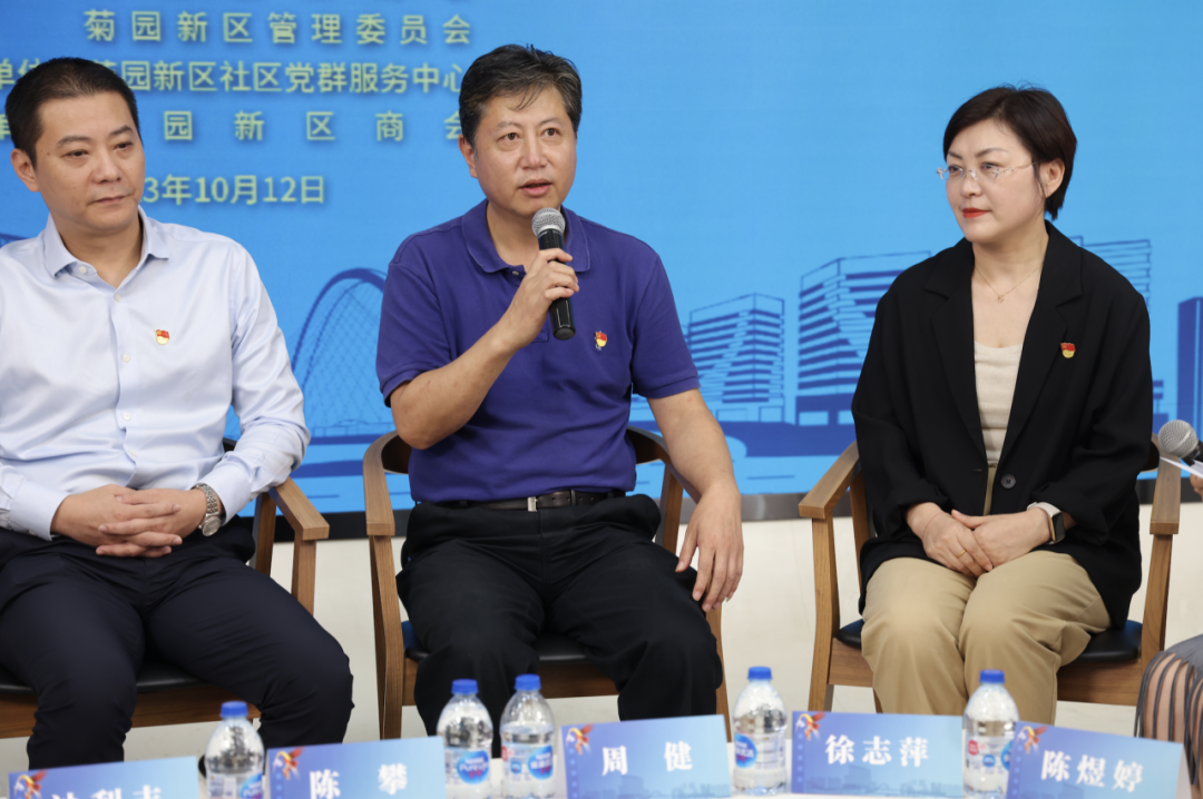 周健首先介绍了菊园新区民营经济的发展情况。他表示,菊园新区这几年经济发展、城市建设都发生了深刻的变化,这其中民营经济的贡献功不可没。接下来,菊园将坚持在营造良好的营商环境上着力,开展调研掌握企业真实情况和诉求,积极回应企业关切;组建一批产业联盟,丰富完善配套产业,用好市级、区级产业扶持政策;按照四个“重”要求,做好存量企业“八问一送”,提供精准服务,通过多种举措把民营经济发展这把“火”点得更旺。