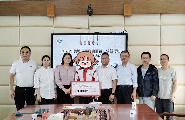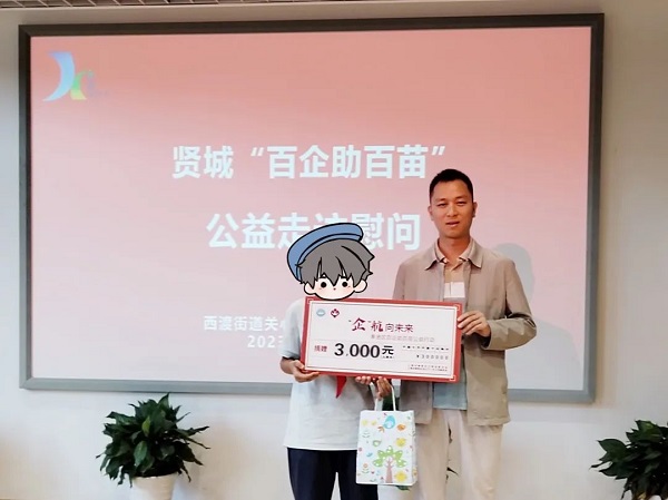 捐赠仪式上,爱心企业家代表为青少年送上爱心资助金和学习用品。