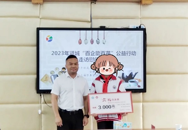 活动现场,朱海英介绍了“百企助百苗”公益行动的背景及意义,称赞奉贤区安徽商会企业家们无私的大爱精神,希望每位企业家在资助同时,持续关注青少年的健康成长。同时,她也希望孩子们要珍惜这份大爱和帮助,懂得感恩,不断努力学习,成为有责任、有爱心的好少年!