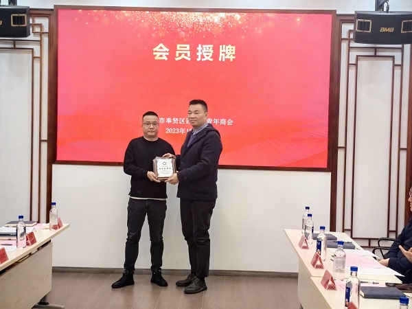 2023年,一批新兴的年轻力量入驻青年商会,他们与时俱进、开拓创新,带领企业跟上时代迭新的脚步,推动四团镇新兴产业发展。上海启牛优膳、上海爱杰园区代表所有新会员上台接受授牌。