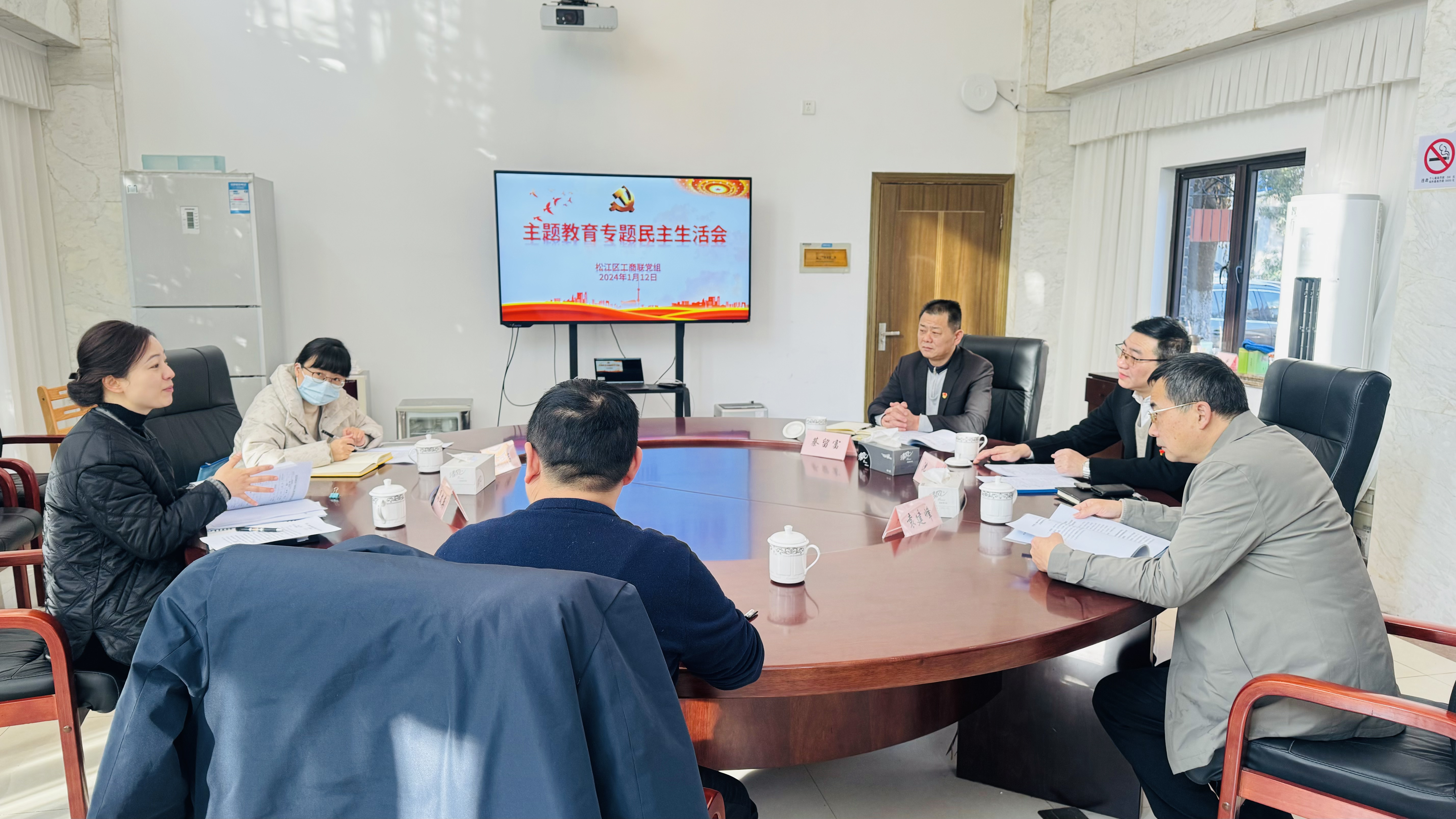 1月12日上午,松江区工商联党组召开学习贯彻习近平新时代中国特色社会主义思想主题教育专题民主生活会。区委统战部副部长、区工商联党组书记沈伟主持会议,区工商联党组成员、副主席袁建峰、蔡留富参加。区委主题教育办联络四组到会指导。
