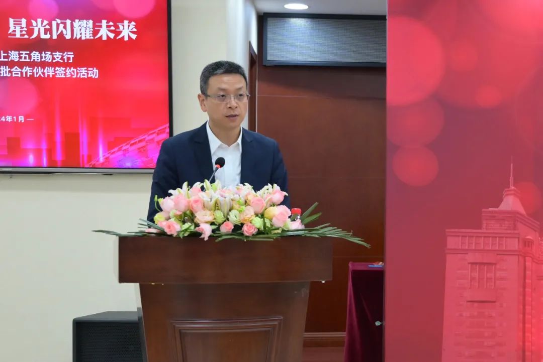 为深入贯彻落实《中共中央 国务院关于促进民营经济发展壮大的意见》和习近平总书记致全国工商联成立70周年贺信精神,充分发挥金融对民营经济发展的赋能作用,1月30日上午,杨浦区工商联联合区金融办、农业银行上海五角场支行成功举办“汇聚创新活力 星光闪耀未来”——2024年杨浦“政会银企”首批合作伙伴签约活动。区委常委、统战部部长董鑫旺,农行上海分行党委委员、副行长张国兴出席签约仪式并讲话。区政协副主席、区金融办主任李长毅,区委统战部副部长、区工商联党组书记王莲青,农行上海五角场支行党委书记、行长李慧俊,农行上海分行公司业务部总经理马红,农行上海分行普惠金融事业部总经理何荣华等参加签约活动。