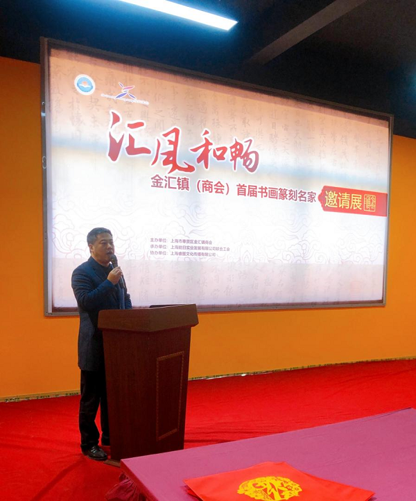 金汇镇商会秘书长陈军辉代表金汇镇商会,向所有参与此次书画展的艺术家们表示衷心的感谢。