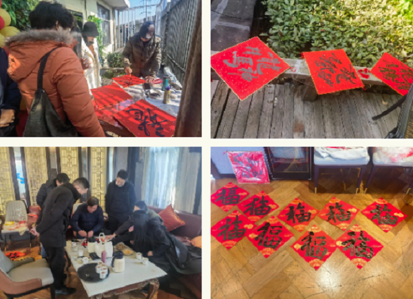 参观前,夏建峰和孙忠民挥毫泼墨,热情洋溢地写下一副副“福”字。一笔一画遒劲有力,一字一句增添吉祥瑞气,营造出浓浓的“龍年味”。一行行俊逸的书法、一个个充满吉祥的福字跃然纸上。现场浓浓的年味伴随着墨香扑面而来,画家们把对生活的美好愿望通过笔墨神韵变成喜庆的祝福送给参加活动的商会会员们。