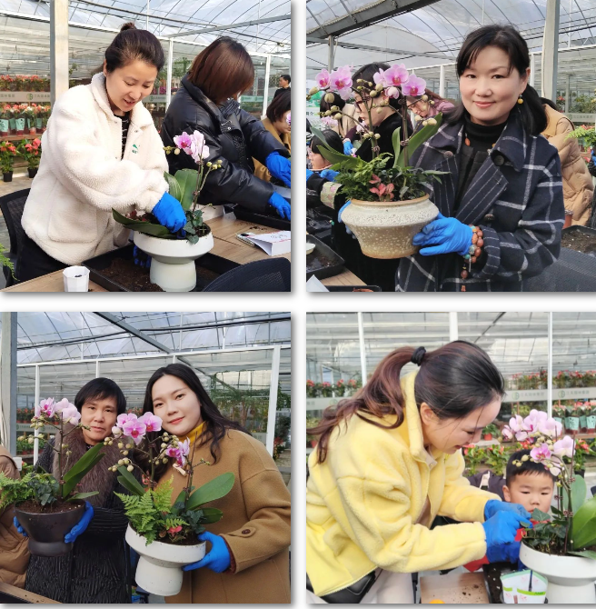 现场,在江辉的亲自示范与精心指导下,大家选花、组盆,把手中原本普通的花草,通过巧妙搭配、创新组合后,变成独具一格的花艺作品。欣赏着自己双手制作出来的作品,每个人脸上都洋溢着喜悦欢快的笑容,与花朵交相辉映。