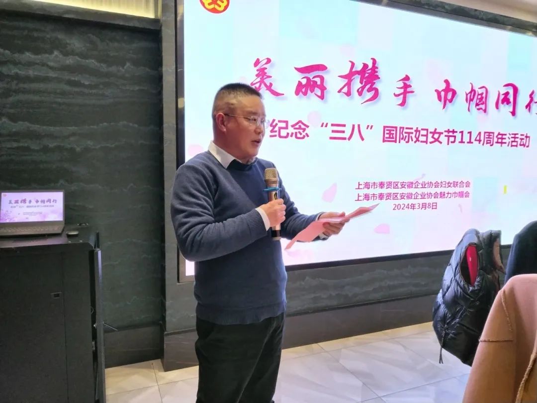 为增强会员归属感,凝聚女性力量,3月8日,奉贤区安徽商会组织开展“美丽携手 巾帼同行”——庆祝“三八”国际妇女节活动。区工商联党组成员、副主席薛冬梅,区妇联副主席李红兵,奉贤区安徽商会会长潘诗良,监事长高振,执行会长刘锦保、范磊、年士君,商会妇联主席王彩云携商会妇联及魅力巾帼会女企业家代表近30多位女同胞共庆佳节。