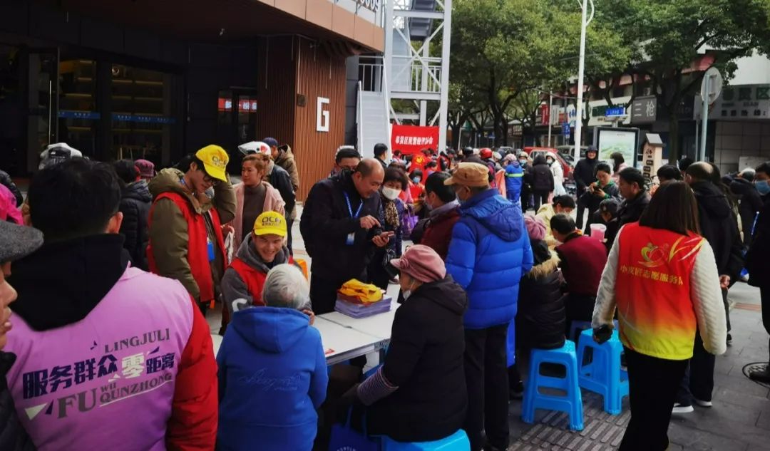 在当天活动现场,健康检测与咨询摊位人头攒动,理发、维修场地你来我往,妇女维权、金融知识宣讲、东方有线现场办理等点位更是人气满满,还有配钥匙、磨剪刀、修鞋、手工花束等服务项目各显神通,现场还为有需要的群众送上了一杯杯暖心姜茶。协会工作人员热情地为活动现场做着各项服务:安排座椅、作调查问卷、分发活动纪念品、引导寻求服务的居民群众……