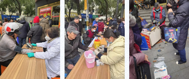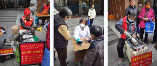 一位80多岁的阿婆在医生检测完毕之后说:“年纪大了,我很担心自己‘三高’的风险。这场在家门口的活动很好,既有仪器检测,又有医生可以现场咨询,真的是贴人心。”一位居民说:“现在像磨剪刀、修鞋这类服务在外面越来越少了,我今天自己拿了一把刀过来磨,还帮邻居带了一把刀过来磨。”初步统计,此次公益活动共为300多人次的社区居民提供了便民服务,受到居民们的热烈欢迎。