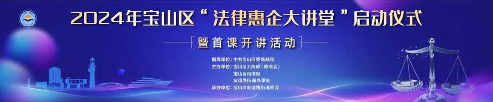 为深入贯彻落实《中共中央 国务院关于促进民营经济发展壮大的意见》,认真践行习近平总书记关于“两个健康”的重要讲话和指示精神,持续优化宝山区法治化营商环境,3月14日上午,宝山区工商联举办2024年“法律惠企大讲堂”启动仪式暨首课开讲活动。