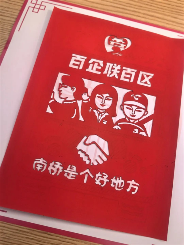“南桥撕纸”作为奉贤非遗保护项目,是南桥镇多年来重点打造的文化品牌之一。本次活动特邀“南桥撕纸”第二代传承人何玉玮为“百企联百区”制造业一组设计主题logo。
