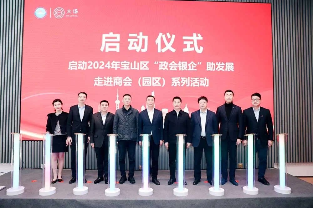 在启动仪式上,陈汇青和参会的相关职能部门和单位的负责同志共同启动“2024年宝山区‘政会银企’助发展走进商会(园区)系列活动”。