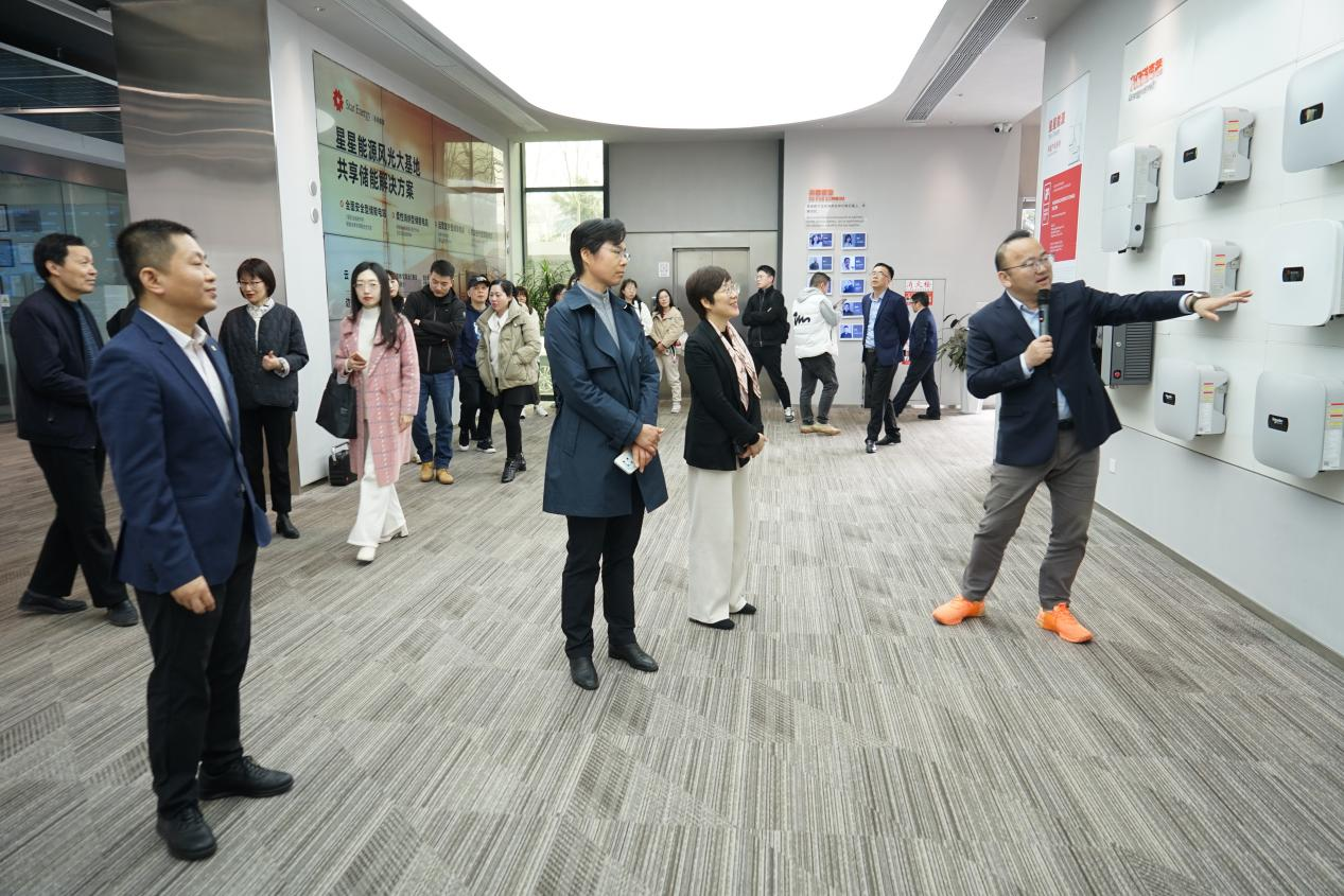 在万帮数字能源股份有限公司,考察组一行参观了企业光储充放一体化充电场站、企业展厅等,听取企业战略规划、设计研发、产品推广等方面的详细介绍,了解企业在数字化转型方面的成效和经验。