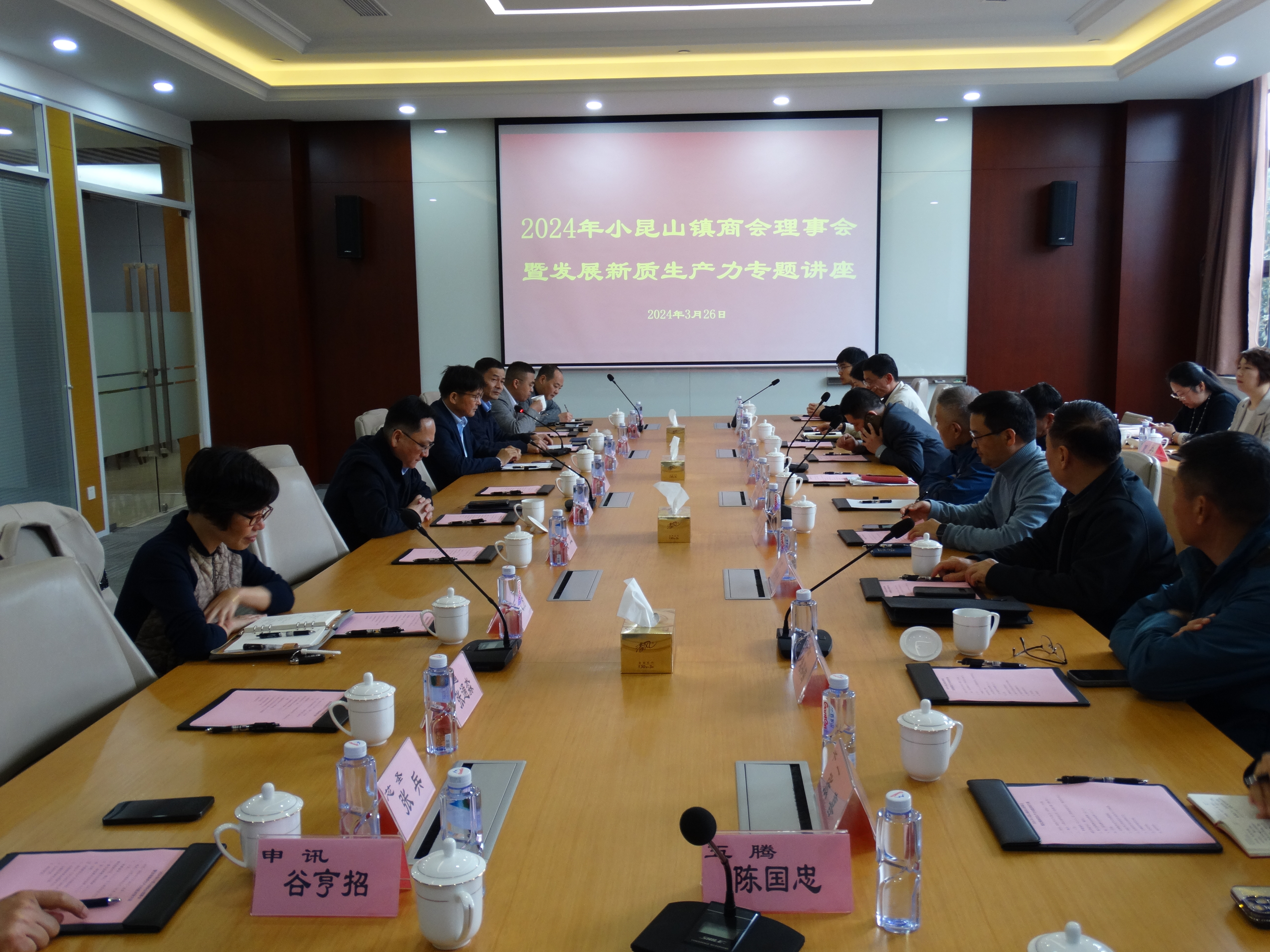 3月26日下午,松江区小昆山镇商会召开理事会。区委统战部副部长、区工商联党组书记沈伟,小昆山镇党委书记陆雪锋出席会议并讲话,镇党委副书记、镇长姜立和镇党委委员、镇商会秘书长梅志芳出席会议,副镇长、镇商会常务副会长宋会靖主持会议。