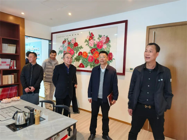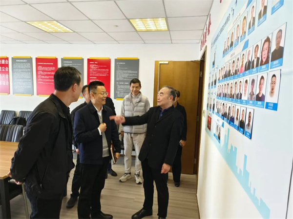 陈永波陪同区民政局一行参观商会文化展示区域。