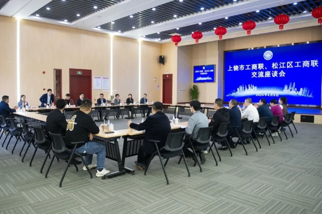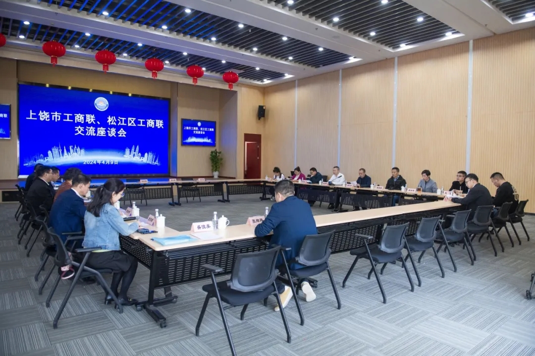 交流座谈会上,沈伟详细介绍了松江区情和民营经济发展情况,以及工商联工作情况。史海辉介绍了上饶市经济社会发展情况以及上饶市工商联特色工作。小昆山镇商会常务副会长、副镇长宋会靖介绍了全国“四好”商会工作情况。