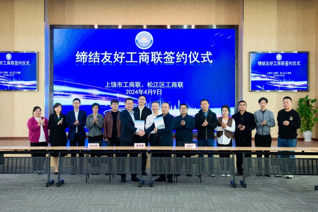 在友好工商联签约仪式上,上饶市工商联党组成员、副主席周文斌和松江区工商联党组成员、副主席蔡留富分别代表上饶市工商联和松江区工商联签订友好工商联(总商会)合作框架协议。双方将充分发挥两地优势,增进友谊和合作,助推两地经济带高质量发展。