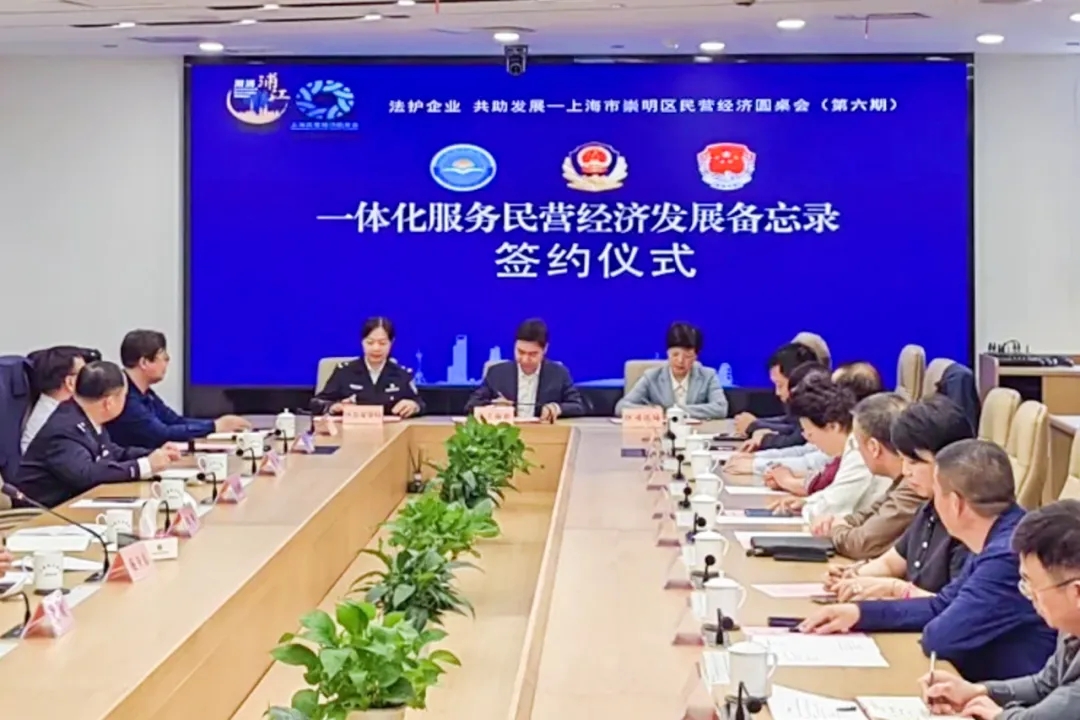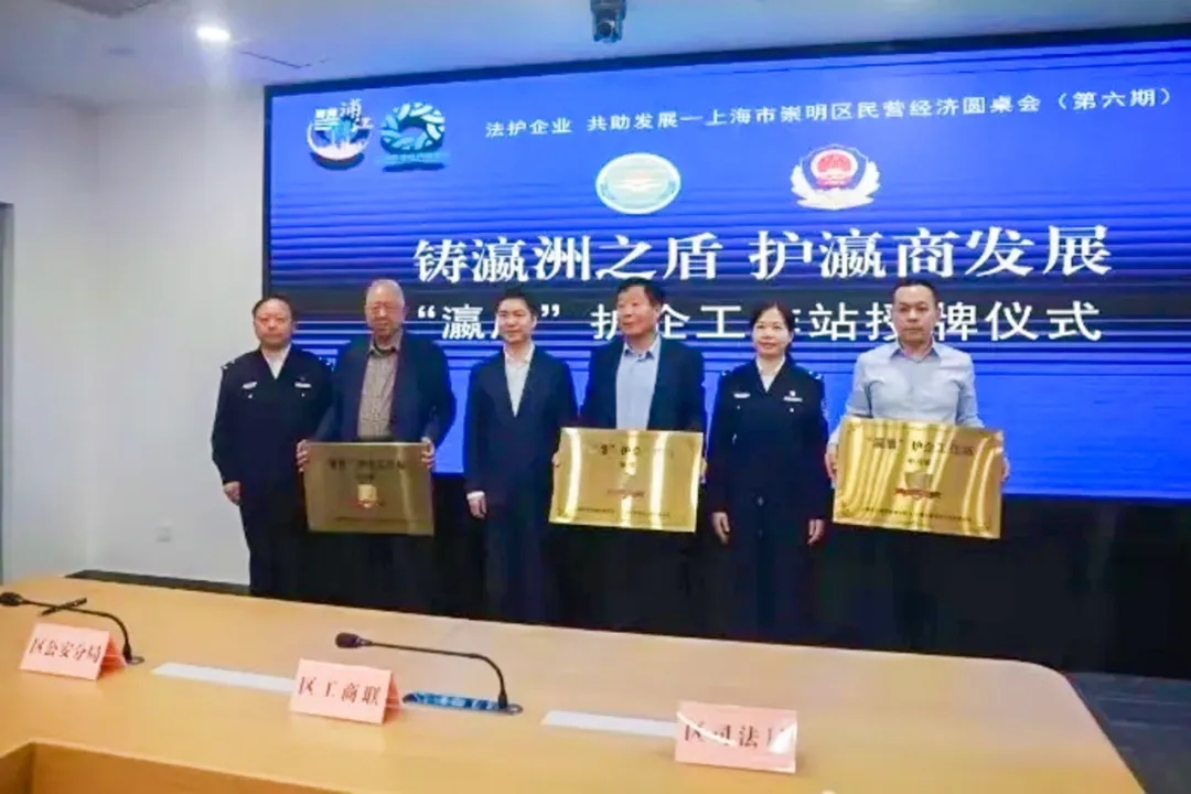 会上,区公安分局副局长宋平通报区公安分局服务保障民营经济发展工作情况。市工商联副主席、区工商联主席仇瑜峰与区司法局局长时枫、区公安分局副局长朱秀红签订《服务民营经济发展备忘录》。仇瑜峰与区公安分局副局长朱秀红、张冲共同为商会代表颁发“护企工作站”牌匾。与会企业家以书面形式就改善崇明区法治化营商环境提交意见建议。