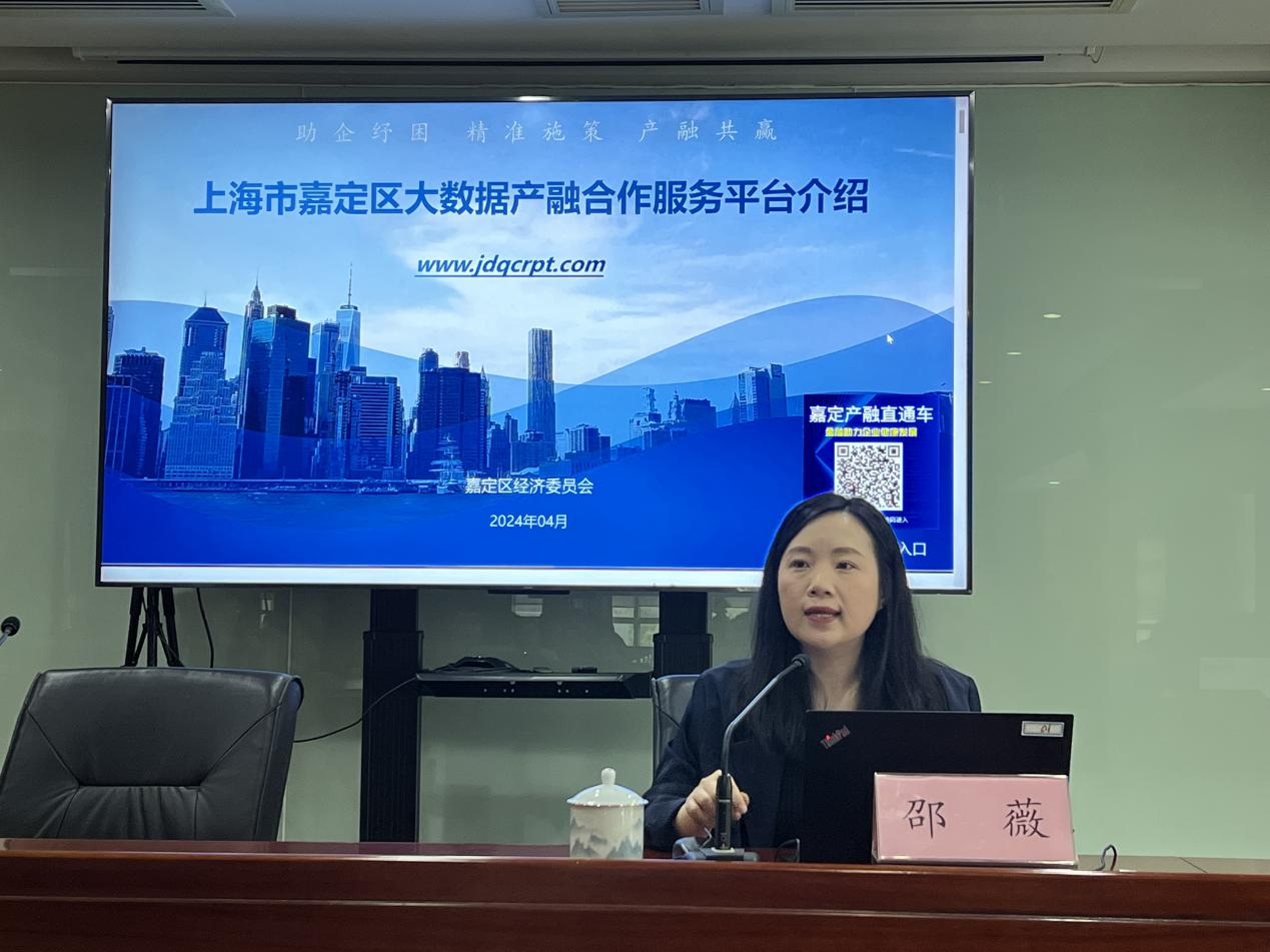 首先由邵薇介绍了嘉定区产融直通车平台,从区产融平台的建设背景、建设内容、产融特色产品及平台成果四个方面介绍了嘉定产融直通车的发展情况,并详细解答了如何帮助企业用好金融政策,深化金融助企措施,进一步有效帮助科技型中小企业解决融资难问题。