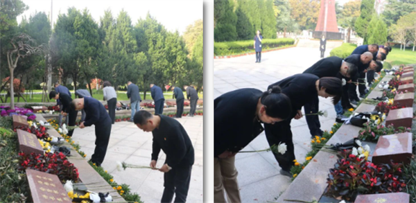 怀着对革命烈士的无比崇敬之情,全体人员缓步绕行瞻仰烈士墓碑,静静聆听工作人员讲述烈士的英雄事迹,感受革命先烈坚定的信念和不怕牺牲、顽强拼搏的崇高精神,并依次向革命烈士墓碑献花。