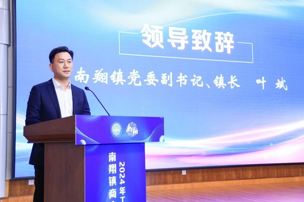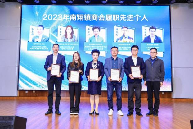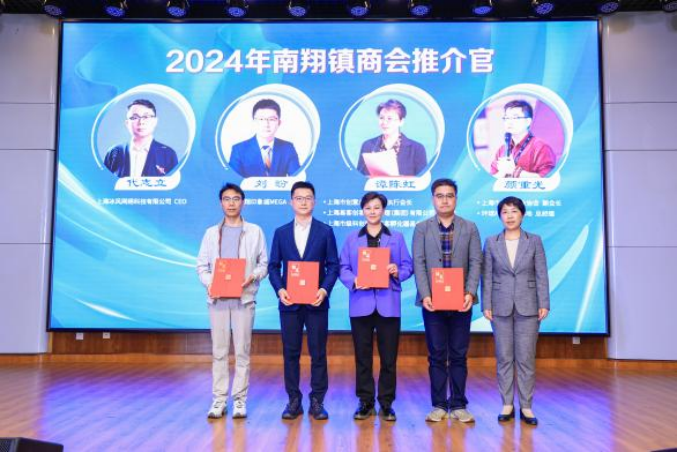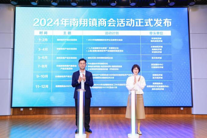 叶斌、季虹共同发布2024年南翔镇商会活动菜单。姜小静为2024年南翔镇商会推介官颁发聘书。孙铮为2023年度南翔镇商会履职先进个人颁奖。