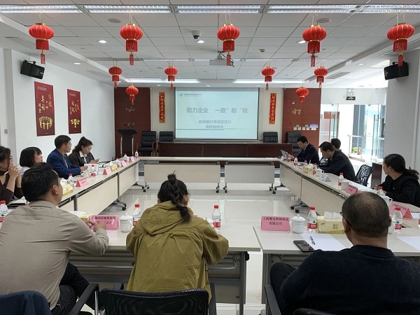 为了促进企业家与银行之间、企业家与企业家之间的交流与合作,加强相互的沟通与协作,近日,奉贤区南桥镇商会与中国邮政储蓄银行奉贤区支行联合在邮储银行奉贤区支行二楼会议室开展“易企营,助力企业发展,创造平台,共创辉煌”银企座谈会。南桥镇商会党支部书记章卡兵、中国邮政储蓄银行奉贤区支行行长朱旗、中国邮政储蓄银行奉贤区南桥支行行长吴春雷、中国邮政储蓄银行奉贤区支行相关业务负责人及南桥镇商会10余家会员企业相关负责人参加。