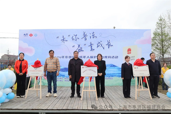 随后举行了隆重的揭牌仪式,余仲威、区人民检察院检委会专职委员倪莎;区关工委副主任朱海英、区福建商会监事长林国勇;区福建商会秘书长毕春兰、上海多乐源乡亲子营地总经理黄粲辉上台为《乐龄育才教育实践基地》《未成年人法治教育实践活动站》《奉贤区福建商会亲子乐园基地》揭牌,标志着这些基地将成为未成年人保护工作的重要阵地。