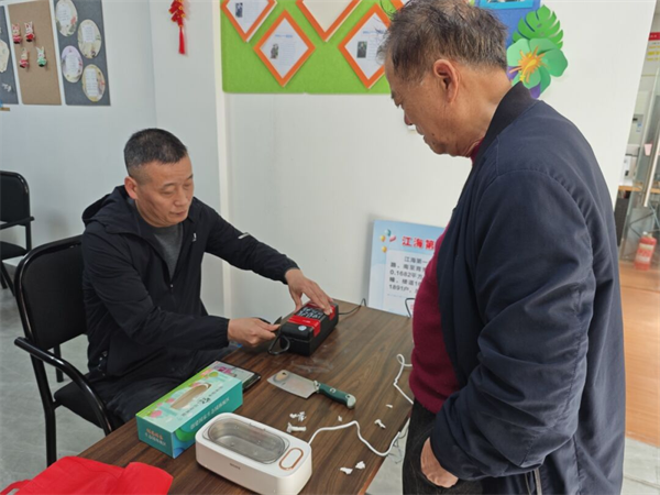 近日,奉贤区南桥镇商会“百企联百区”服务业二组来到江海一居开展便民服务月月行活动。此次服务活动项目包括:理发、打磨刀具、测量血压、测量血糖、金融反诈宣传等。